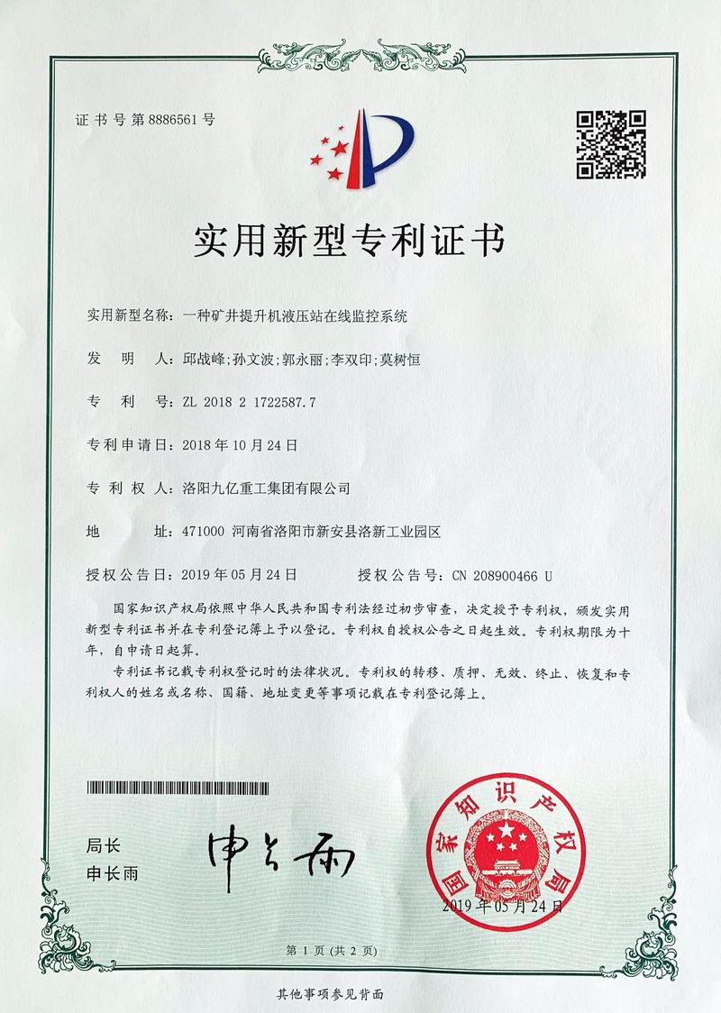 一種礦井提升機液壓站在線監(jiān)控系統(tǒng)證書