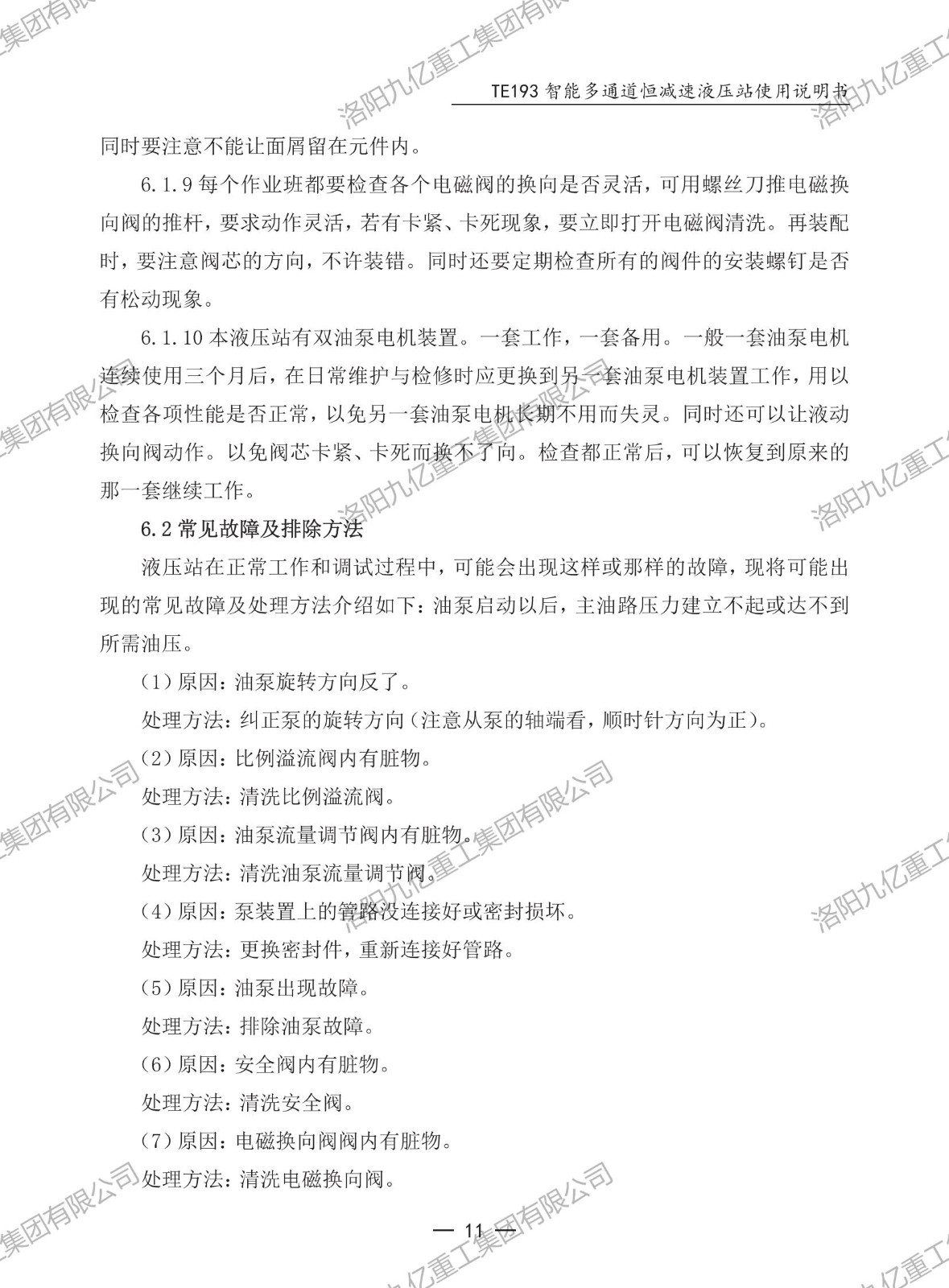 智能多通道恒減速液壓站TE193使用說明書